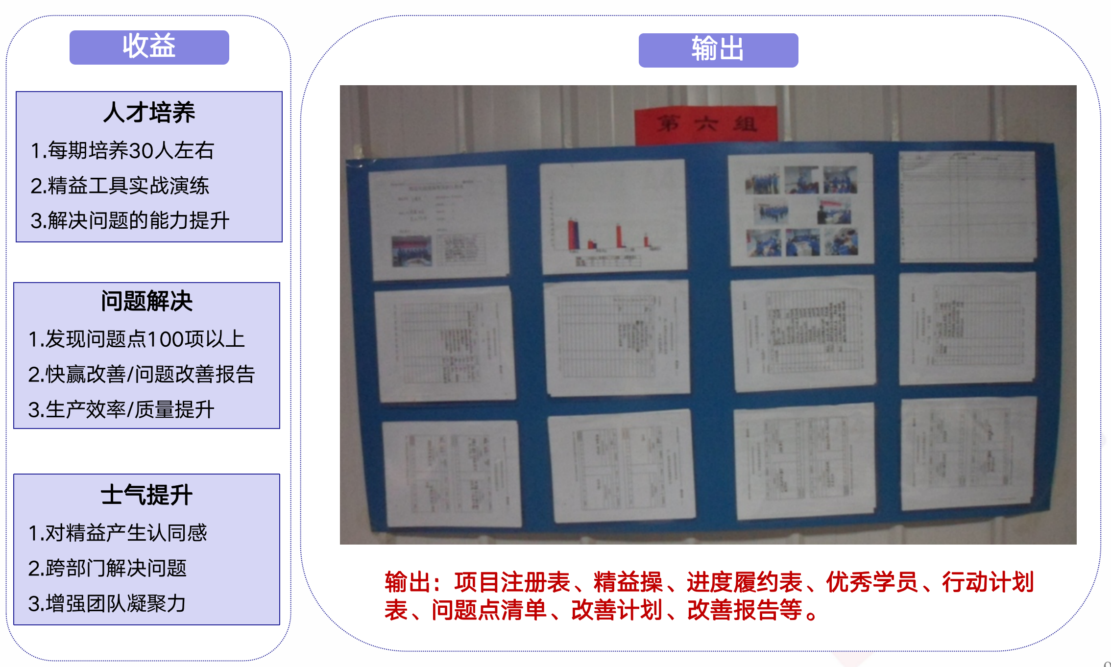 公司的中高層領導、相關部門需給予資源上的支持,培訓倡導者需參加開課儀式和課程總結;培訓小組成員需帶領員工一起改善,形成合員參與的精益氛圍。