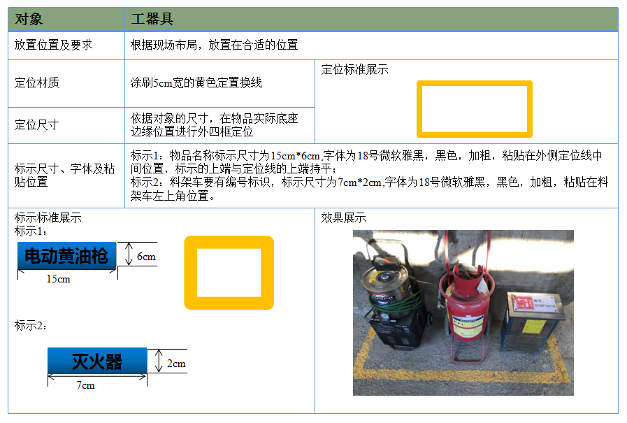 規(guī)定物品堆放、工具放置、通道、班組(個(gè)人)工作場(chǎng)地位置。