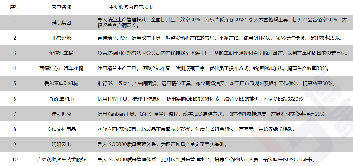 擅長業務:現場精益改善,通過價值流分析對于企業流程優化,效率提升,生產模式構建,TPM,看板系統等方面有豐富的實際操作和項目團隊指導經驗。熟練運用DBS模式不斷推動企業文化的發展和業績的增長,指導和幫助企業提升日常管理績效,在改善中尋求變化與創新,滿足不同類型顧客的獨特需求。在六西格瑪項目實施領域,幫助企業提升制程控制能力,改善產品品質,降低成本;并運用精益六西格瑪方式制訂戰略規劃及目標管理體系,為企業培養梯隊人才。