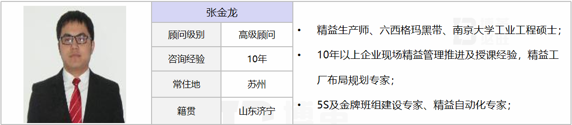 熟悉行業:家電裝配、工程機械、機械加工、電子電器、裝備制造 擅長業務:擅長精益工廠布局規劃、5S及金牌班組建設、信息化可視化管理,推動精益項目實施快速改善,短期內改善生產現場,優化工藝流程及工藝布局\推動全員改善。有豐富的精益項目實戰推進經驗、推動精益項目在企業整體落地、現場標準化改善、生產效率提升、布局優化、培訓道場策劃及實施等、負責30+個工廠精益項目的推進與運營,具有豐富的精益咨詢經驗。