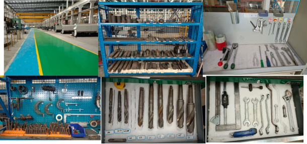 ③ 金工車間、設(shè)備車間設(shè)備復(fù)原的本色,工具四定管理,并明確標(biāo)識(shí),便于快速找物。